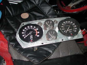 ほんでプリントアウト! 糊付きスチール板に張り付けしたので 裏はこんな感じ・・・ ほんで 校正も終わり 取り付け・・・ 取り付けしたものの結局動かない・・・・ 戻すのも面倒なので 右下にオートメーターを移設・・・・ なんだか 見にくい場所に 重要な計器が集まっているような・・・ |