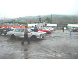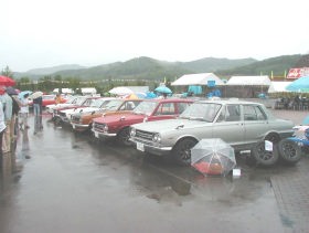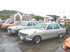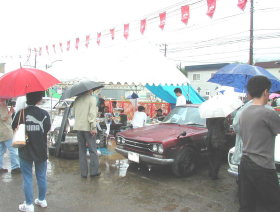 第83話 毎年恒例 北海道クラシックカーフェスティバル に行く! 2002.7 またまた 北海道クラシックカーフェスティバルの時期です 今回は前日まで 仕事で不在・・・・・・ 5日金曜日 仕事から帰った後バタバタと 準備をします・・・・・ 「あれも積まないと・・・これも・・・・・」 よ〜し これでOK! ・・・・・・・・・・・ 物を積み過ぎて 車が傾いています・・・・・・ ・・・・・・ マトモに動くのでヨシとします・・・・ 早く明日にならないかな〜・・・・ ・・・・・・ ほんで当日! 天候は曇り・・・・ 先行きに不安を感じながらも出発! 自宅から赤平市までは2時間半程度! 毎回思いますがドライブには丁度良い距離です 天候のせいで若干キャブの調子が悪いながらも 休憩地点 桂沢湖へ到着 ここも相変わらず曇りです・・・ 休憩後 芦別を抜け 赤平に到着 結局 ここも曇りです・・・・・・ まあ 四の五の言っても 天気は変わらないので さっさと陣地を作って 一発目のビールをプシュ・・・・ んで 2発目・・・・プシュ 3発目・・ ここで 去年前夜祭でべらぼうに泥酔した記憶が蘇り 控えめ&理性を失わない作戦を取ります (同じ過ちを繰り返すトコだった・・・危ない危ない・・・・) 作戦が功を奏したのか 理性を保った(一応?)まま 楽しく前夜祭を終える事が出来ました! (記憶もちゃんと有り!こりゃ凄い!) 7日 北海道クラシックカーフェスティバル当日 理性を保ちながら飲んだはずながら 二日酔い・・・・しかし5時半に起床! (旧車乗りの朝はやっぱり早い・・・) 前日は曇りながらなんとか天候は持ちこたえたのですが 起きた直後から雨脚が・・・・・・ ・・・・・・・・・・・・・・ ・・・・・・・・・・・ ・・・・・ 去年同様 雨・・・・・・ んで開場・・・・・まだやまない・・・・・ しか〜し! ちゃんと お客さんは来るし! そして当日の参加台数は300〜350台と このイベントの認知度をまたまた感ずるのでした! で ボクはと言うと・・・・・・・ あんだけ積んできた物が 雨のせいもあって あんまり売れない・・・・・・・ 物を置いているだけに留守にも出来ないし・・・・ 途中途中短 時間ながら 知人の展示車両の所や ラバーソウルさん PMCS(プリンスモータリストクラブ札幌)さんの ブースに顔を出し出し・・・・・ で あまり自分の車を離れる事無く終了・・・・・・・ 雨も止まなかったし・・・・・・・ 来年こそは 晴天でありますよう 心から願うのでした・・・ と 言う事で 書くコメントもあまり見つからないので 乱れ撮りした 画像でもごらんあれ! ラバーソウルさんのブース! 出店車は この ワークスZと 知ってる人は知ってる 奇跡の早期復活 ワークスGTーRと HELP 住岡店長 の510ブル 3台の出展! で 住岡店長ブルのE/Gルーム カーボンヘッドカバーが強烈! で これは 奇跡の復活&超速の 西社長サファリブラウンGT−R心臓部! |