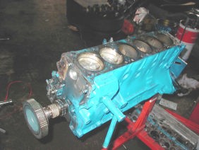 第85話 腰下完成! 2002.7 この前から組み立てている 3リッターエンジンなのですが ようやく ピストンが全部入り 腰下部分が完成しました! 中古のメタルで組んだ割には クランクも軽めで回ります! 今の所いい感じです! で 次はヘッドと・・・・・ 使用予定のN42ヘッドは 若干汚れているので まずは2週間程お風呂に入ってもらいます ヘッドもこんな状態で作業も進められないし 段階的にもメドが付いたと言う事で しばし鑑賞・・・・・・・・ と その後ろで目に付くのは 中途半端な状態のL20エンジン・・・・・ あぁ・・・・ これもなんとかしないと・・・・ あっ! もう1つありました! 某氏から購入した 71Cミッションで〜す! ラッキーな事にL型加工済み 一応換装予定・・・・・・ って 何遍も書いたけど 搭載する車がまだ・・・・ |